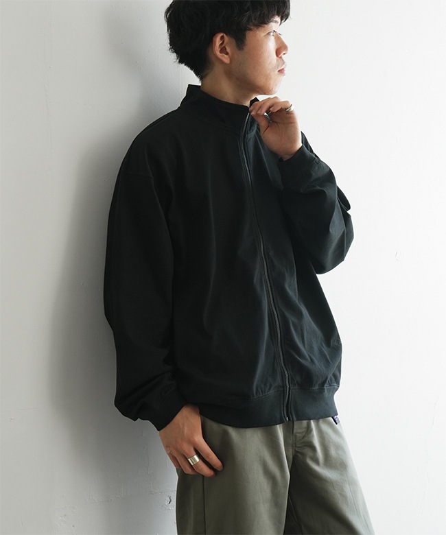 ・USAコットンの空紡糸と、リサイクルポリエステルの撚糸を組み合わせた天竺素材で仕立てられたフィールドジップジャケット。