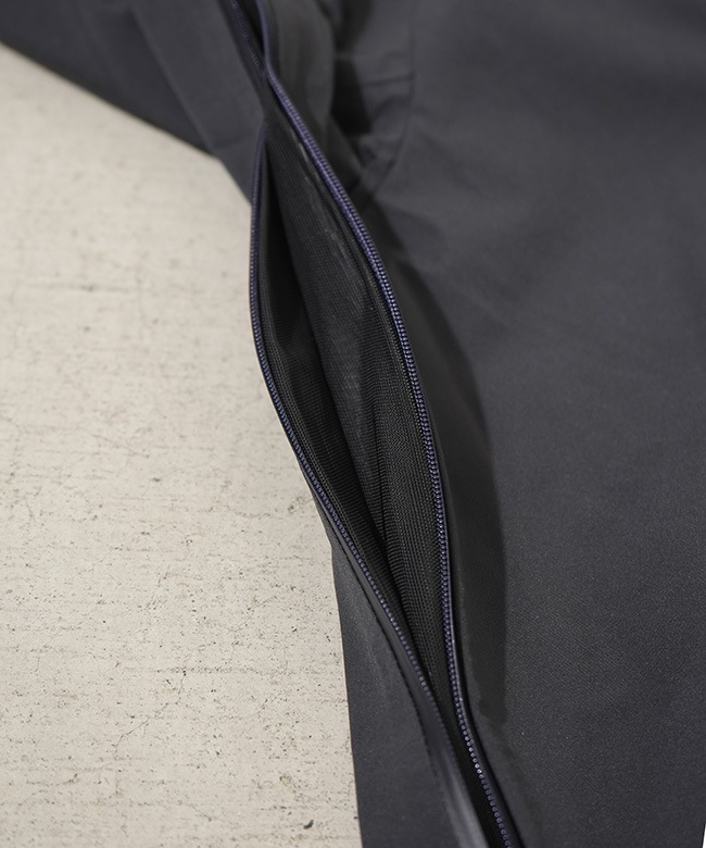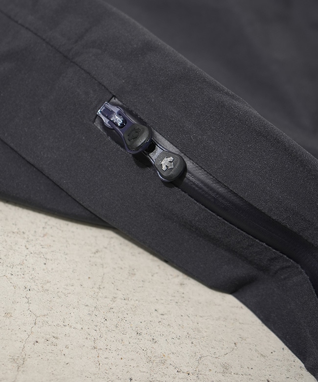 ・2列のジッパーとその間に配置されたメッシュ生地により、外気を取り込み、衣服内にこもりやすい不快な熱や湿気を逃がすことが可能。