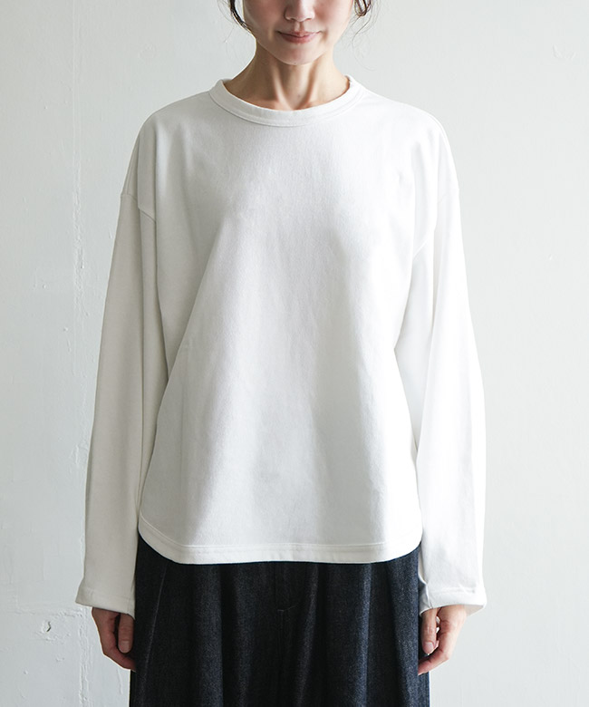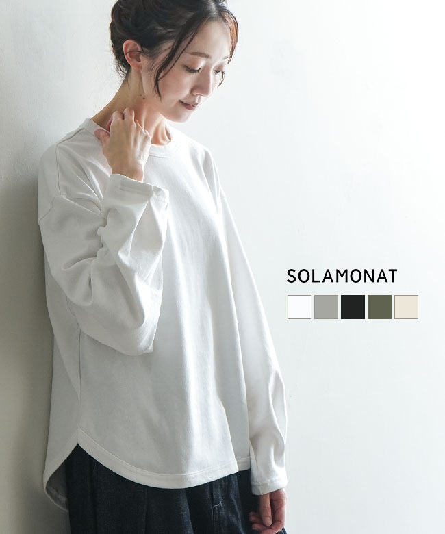 ・生地にはSOLAMONATのオリジナル素材「ペンネ天竺」を使用。弾力感を持たせた、Tシャツ以上スウェット未満の絶妙な厚みが特徴です。