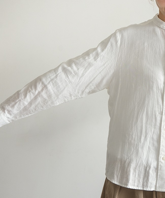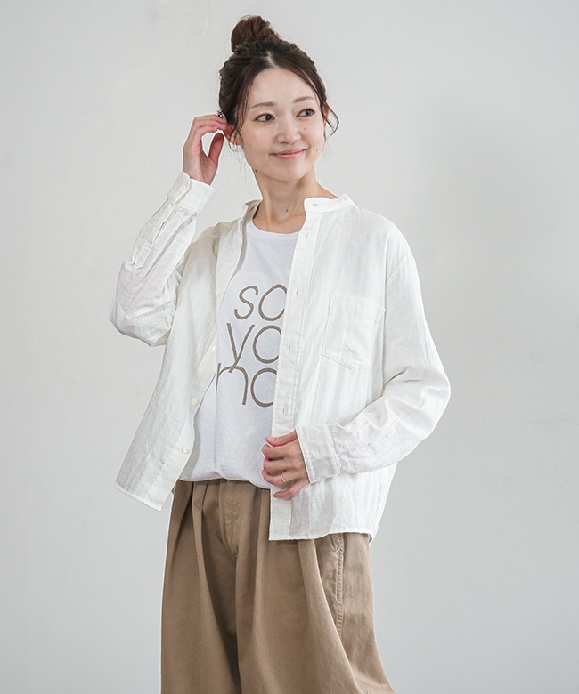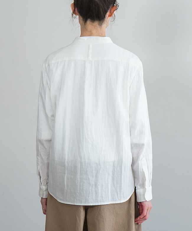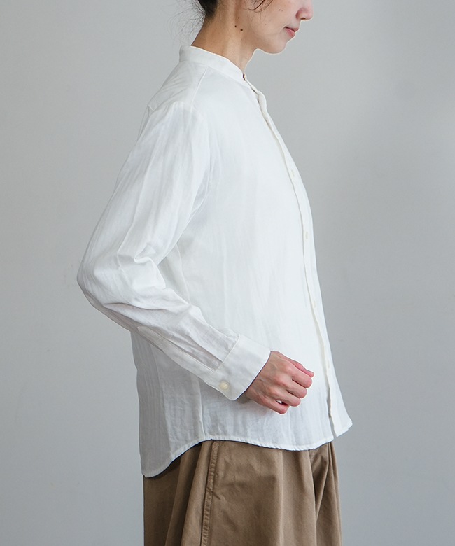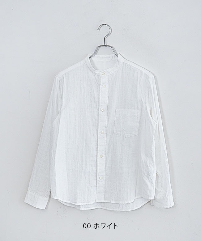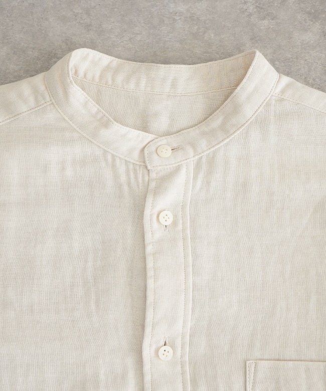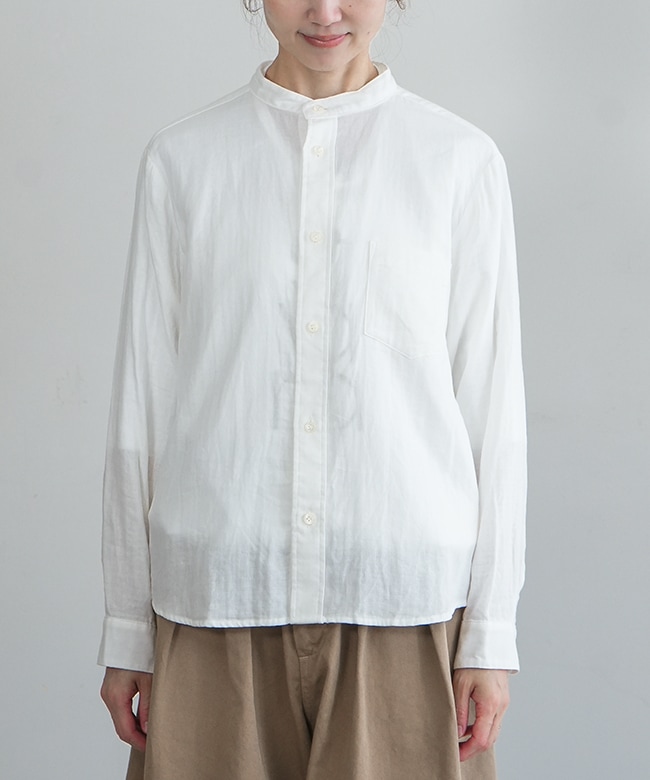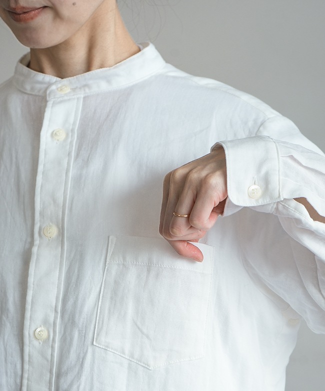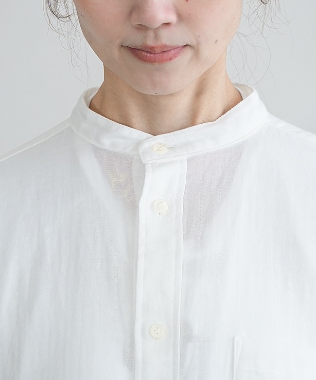 ・マルチに使えるシンプルなデザインのスタンドカラーシャツ。