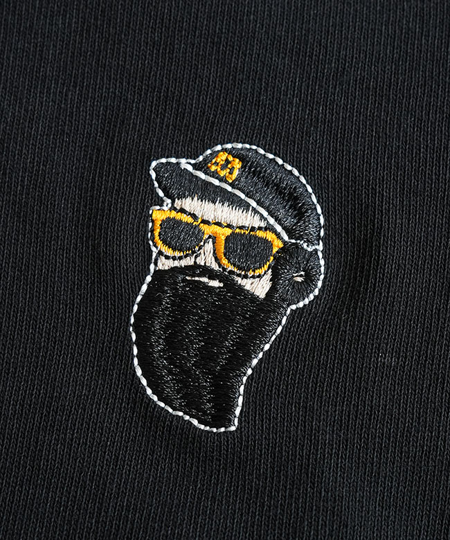 ・右胸にはタイガースファンにはおなじみの「虎マーク」と"HANSHIN Tigers"のロゴ、反対にはタイガースキャップを被ったおじさんをそれぞれ刺繍でデザインしています。