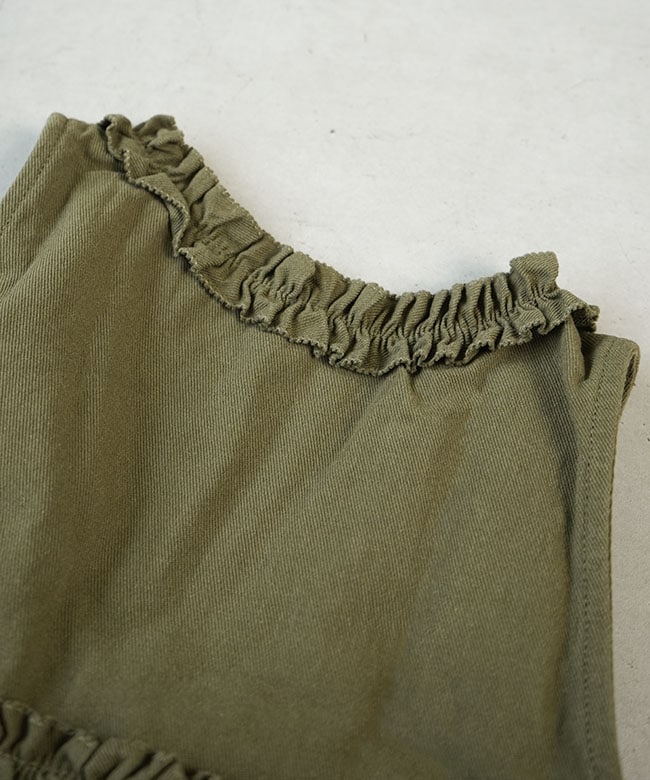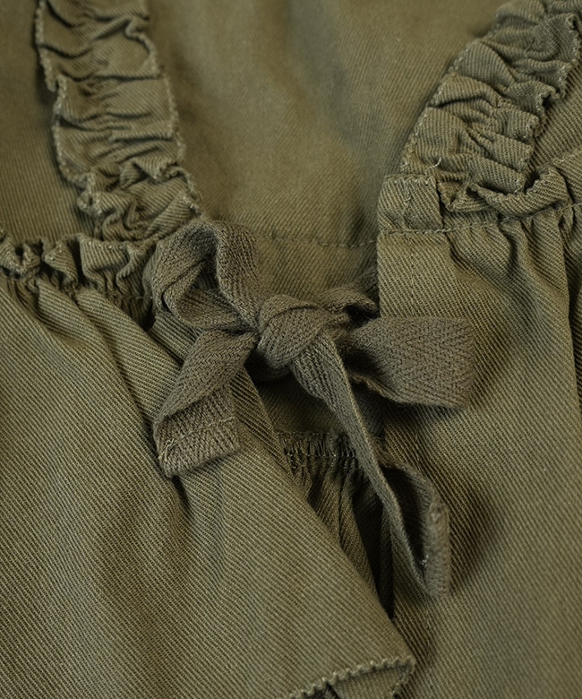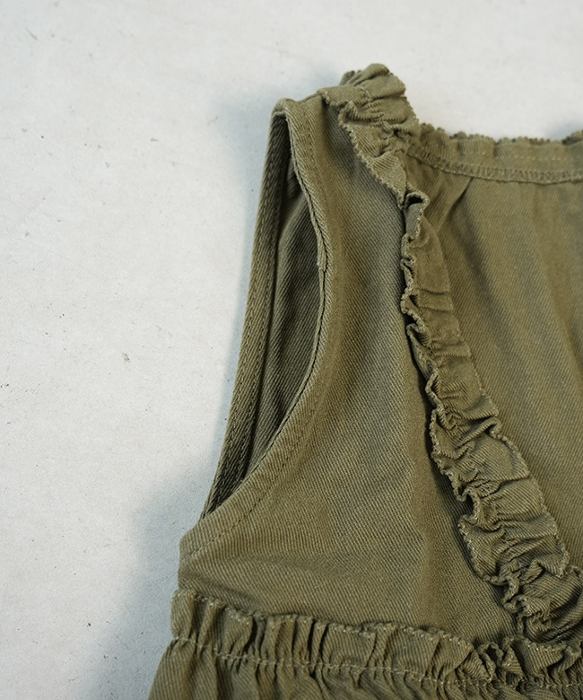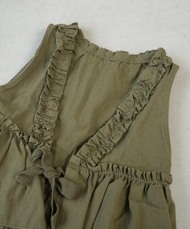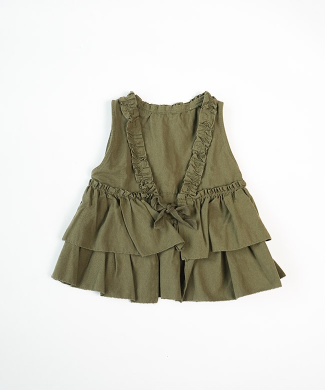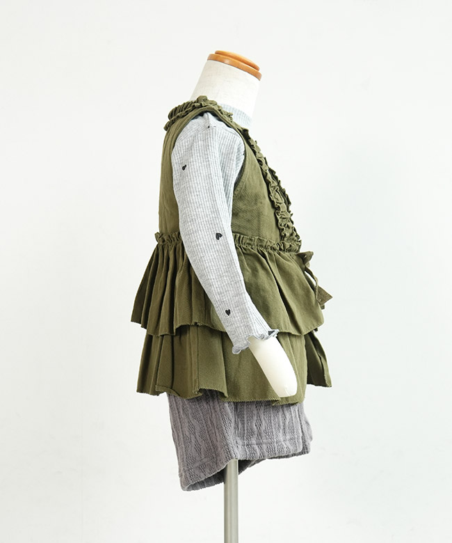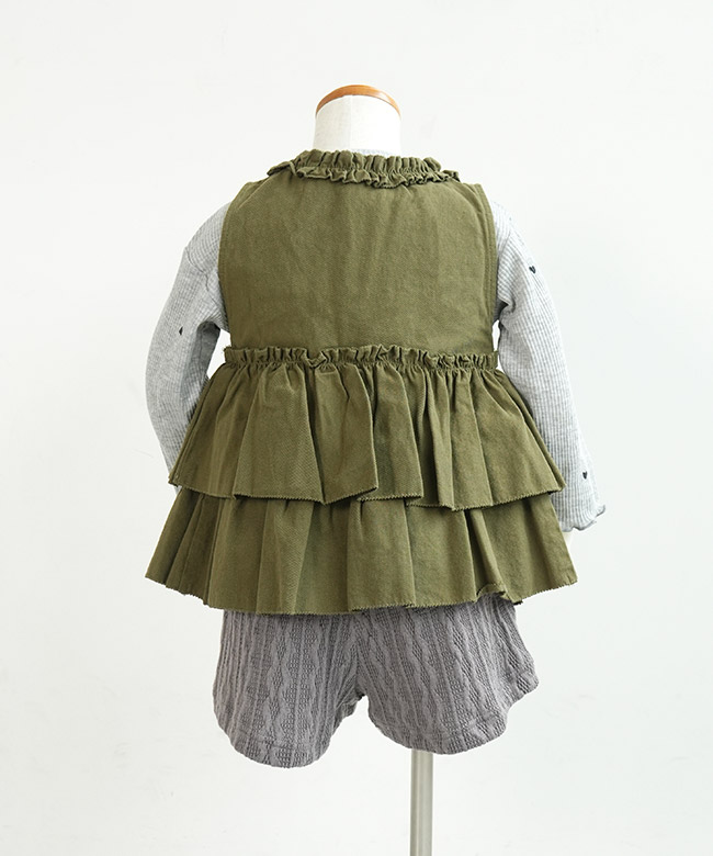 ・ベストはヴィンテージな雰囲気を漂わせるカラーに、フリル使いが華やかなデザイン。