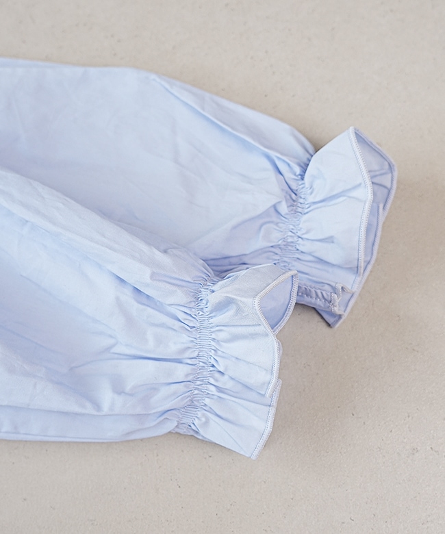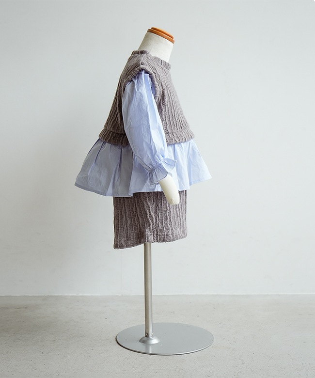 ・袖や裾のフリルで可愛らしくも落ち着いたカラーで上品な印象に。