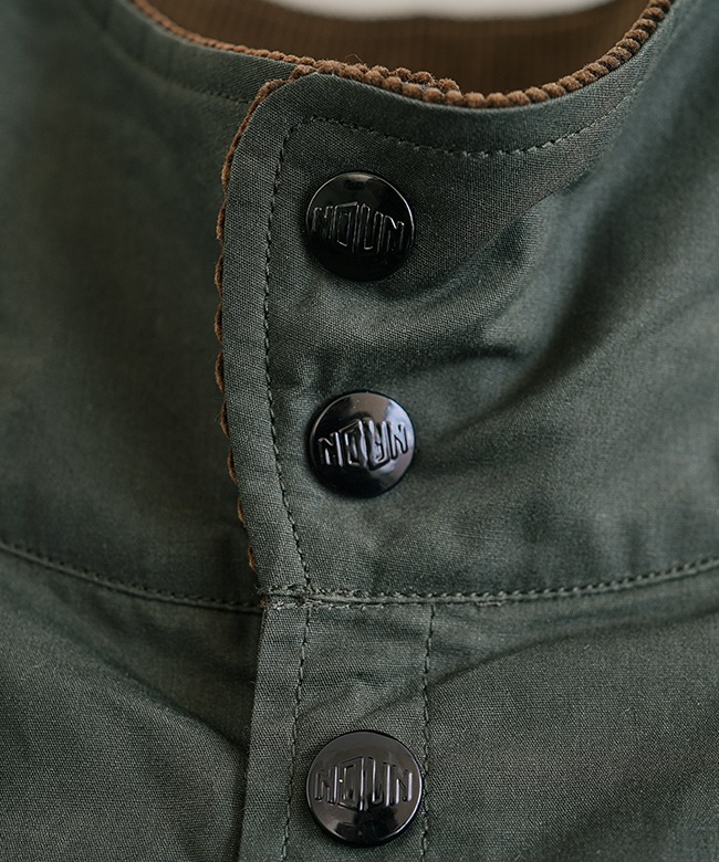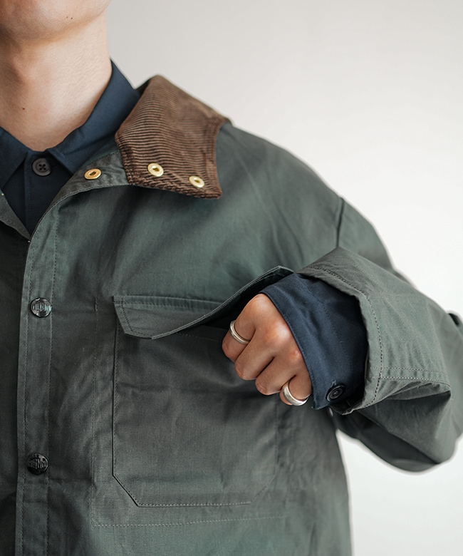 ・特徴的なボタン配置の襟元は、ヨーロッパのヴィンテージワークウェアに見られるディティールがデザインソース。