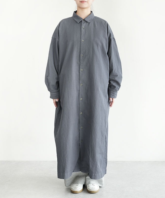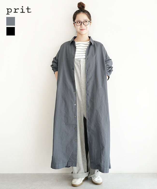 prit(プリット)より、 60/1アンカットコール近江晒加工 レギュラーカラービッグシャツワンピースのご紹介です。