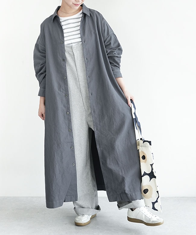 ・肩や身幅にたっぷりとゆとりがあるデザインで、ラフに脱ぎ着できる心地よさがあります。