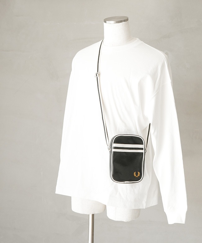 長さ調節可能なショルダーストラップで着こなしによって肩掛け・斜め掛けの両方に対応可能。