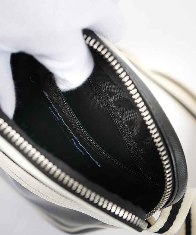 TPUコーティングを施したリサイクルポリエステル素材を使用したショルダーバッグ。