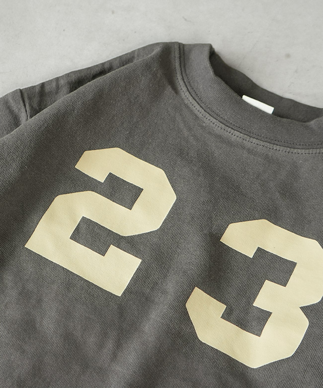 ・アウターからのぞかせても可愛い、フロントにデザインされたナンバープリントがポイント。