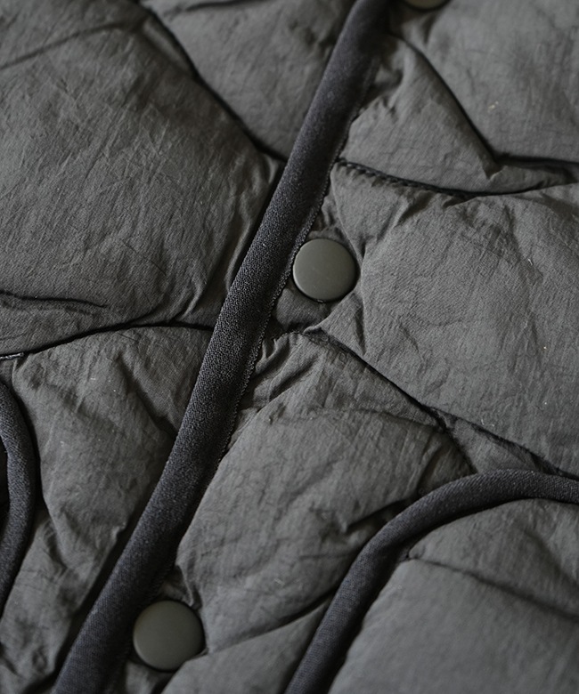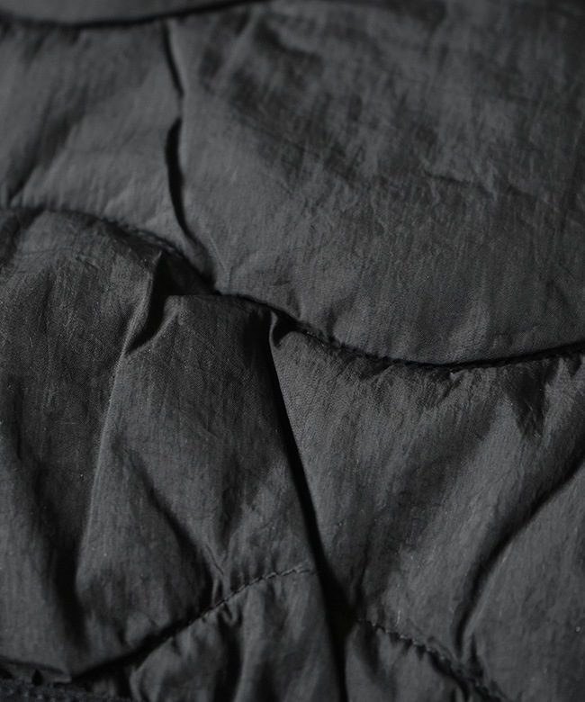 | 素材 | 表地:ナイロン100% 裏地・中綿:ポリエステル100% パイピング部分:ナイロン90% ポリウレタン10% >>素材・生地・加工についての詳細はこちら |