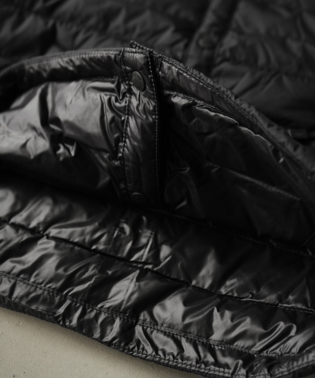 | 素材 | 表地:ナイロン100% 裏地:ナイロン100% 詰物:ダウン90%フェザー10% >>素材・生地・加工についての詳細はこちら |