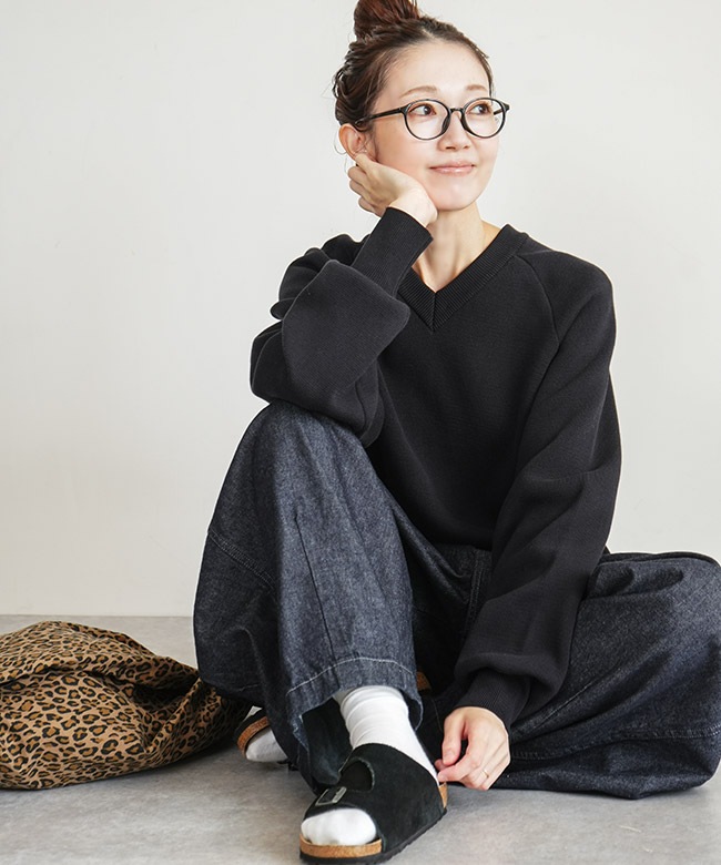 ・全体はゆったりとしたサイズ感ながら、裾や袖口はリブでキュッとなっていて、リラックス感ときちんと感を兼ね備えています。