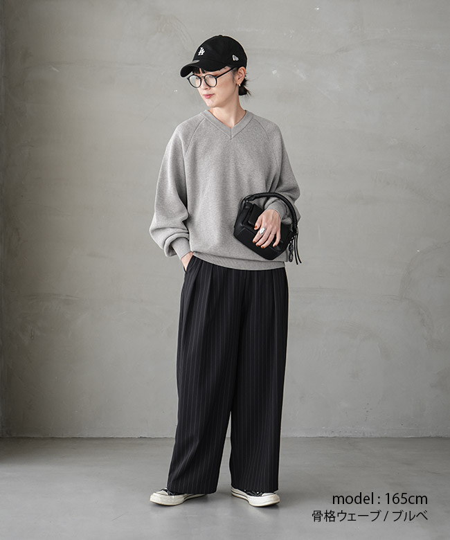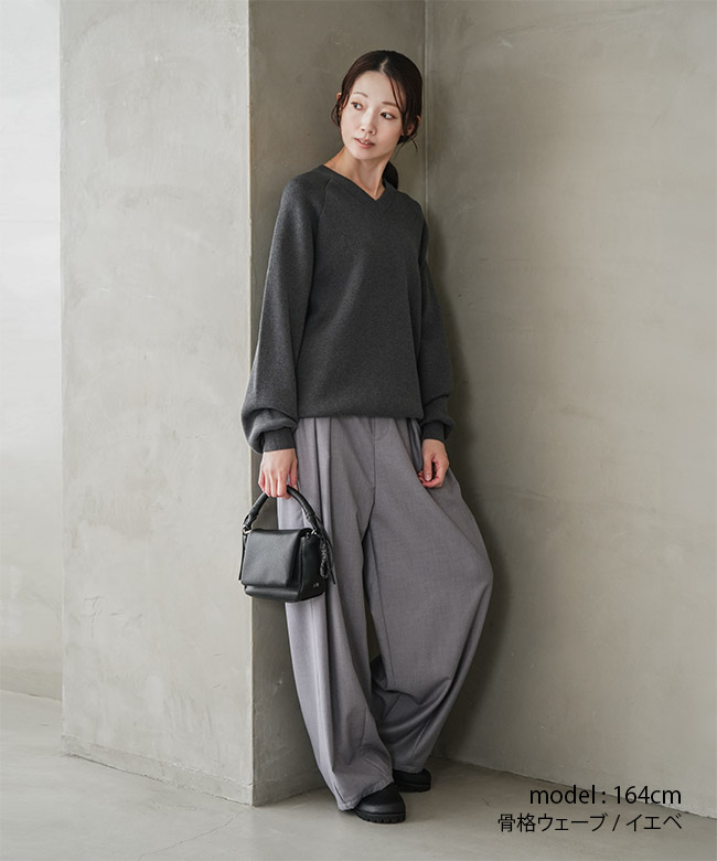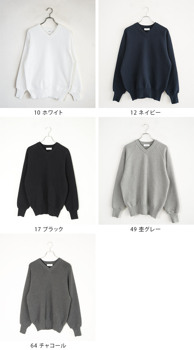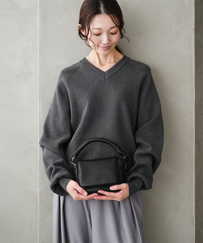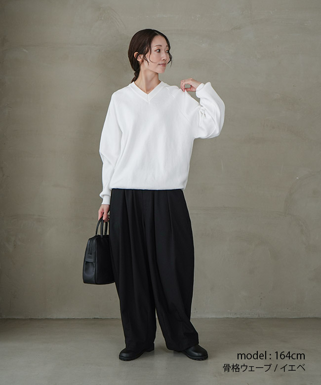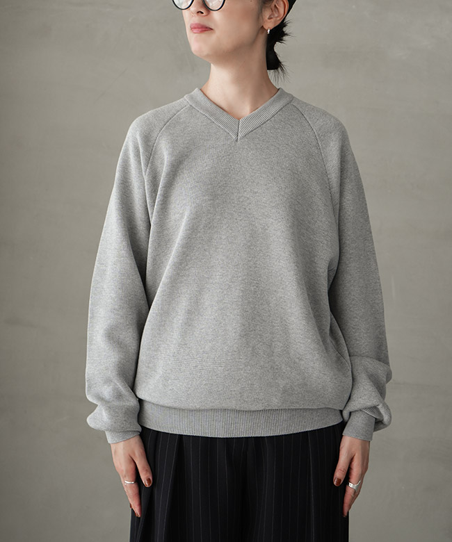 ・すっきりとしたVネックがポイントのプルオーバータイプ。シンプルながらも抜け感のある首元で、レイヤードスタイルにもぴったりです。
