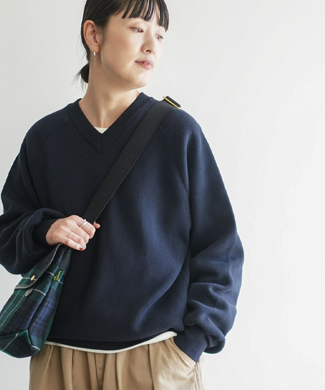 中厚のしっかりとした生地感とお手入れのしやすさから人気を集める”ウエハースニットシリーズ”より、Vネックプルオーバーが登場。