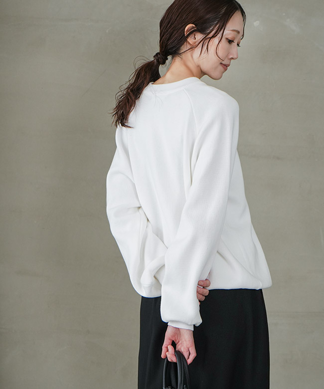 ・ラグランスリーブを採用し、肩まわりも動きやすく、自然な落ち感が大人の余裕を演出。