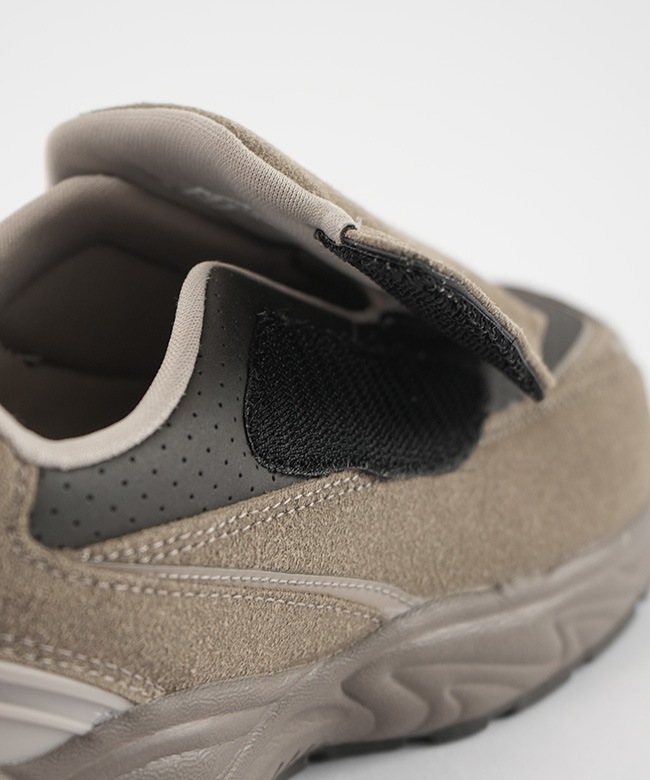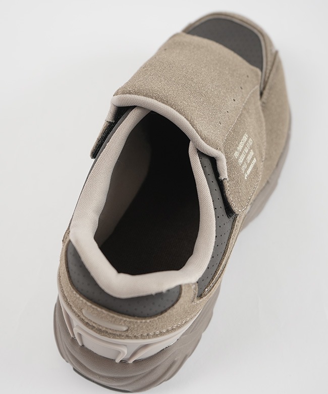 甲部分にはワイドな面ファスナーバンドを採用。片手でもスムーズに着脱ができ、フィット感の調整も簡単。