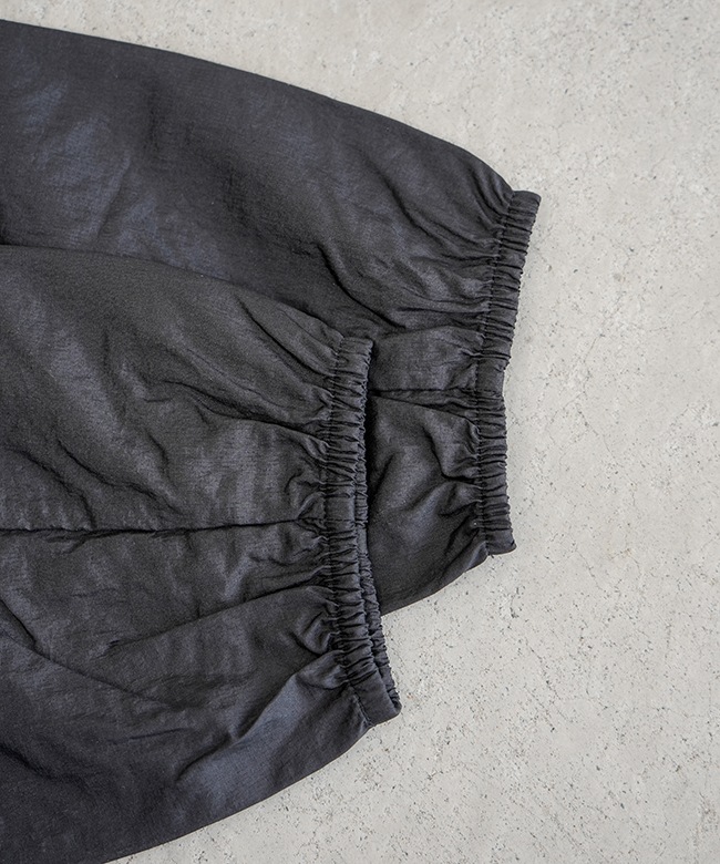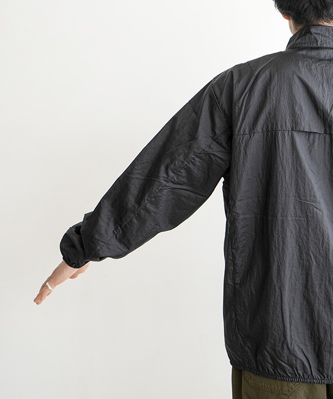 ・袖口や裾はフィット感の高いゴムシャーリングを採用しており、風によるバタつきを軽減します。