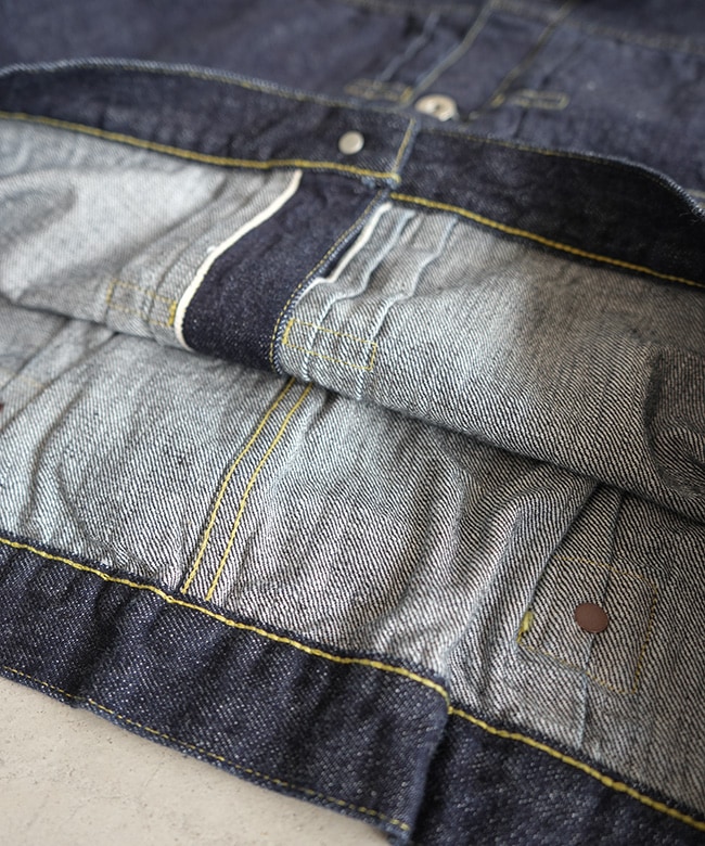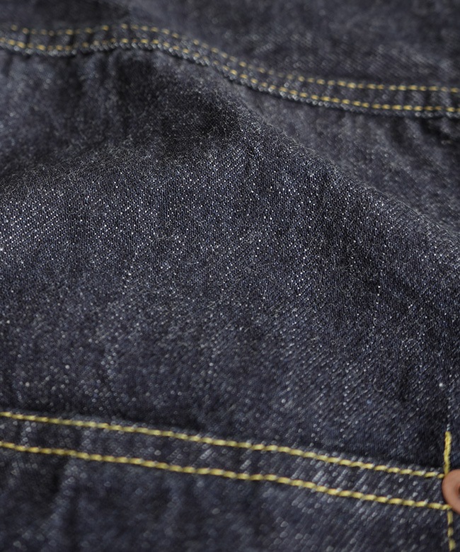 ・超長綿に分類される希少なオーガニックコットン「ジンバブエコットン」を使用したオリジナルのデニムを一から開発し、当時の風合いや色落ち感まで忠実に再現。