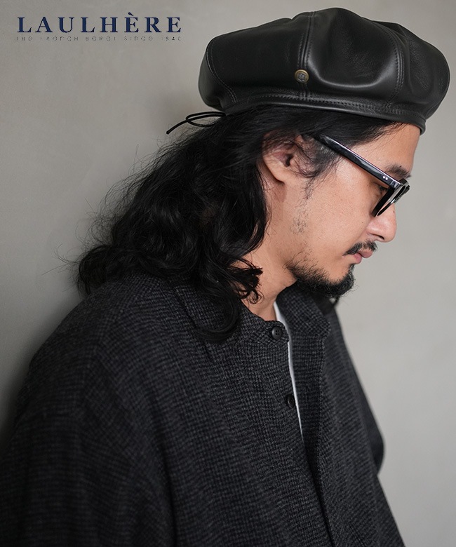 ・Laulhere(ロレール)の「Zura」ブラックレザーベレー帽は、ミリタリーベレーにインスパイアされたデザインを、上質なラムレザーで仕立てたアイコニックな一品。