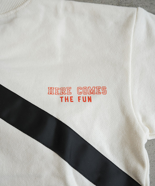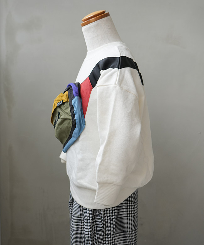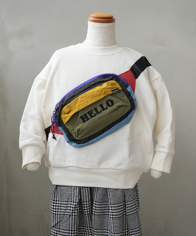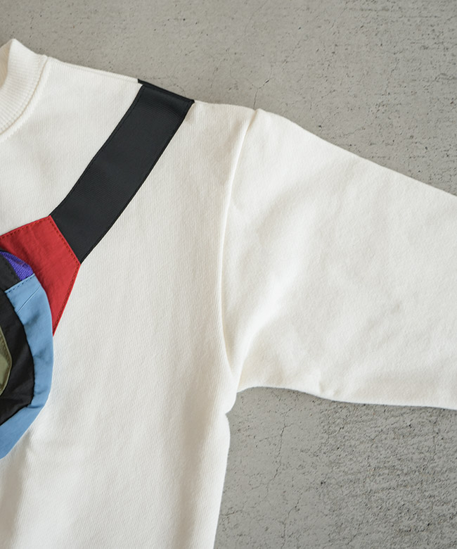 ボディバッグを背負ったような、遊び心たっぷりのトレーナー