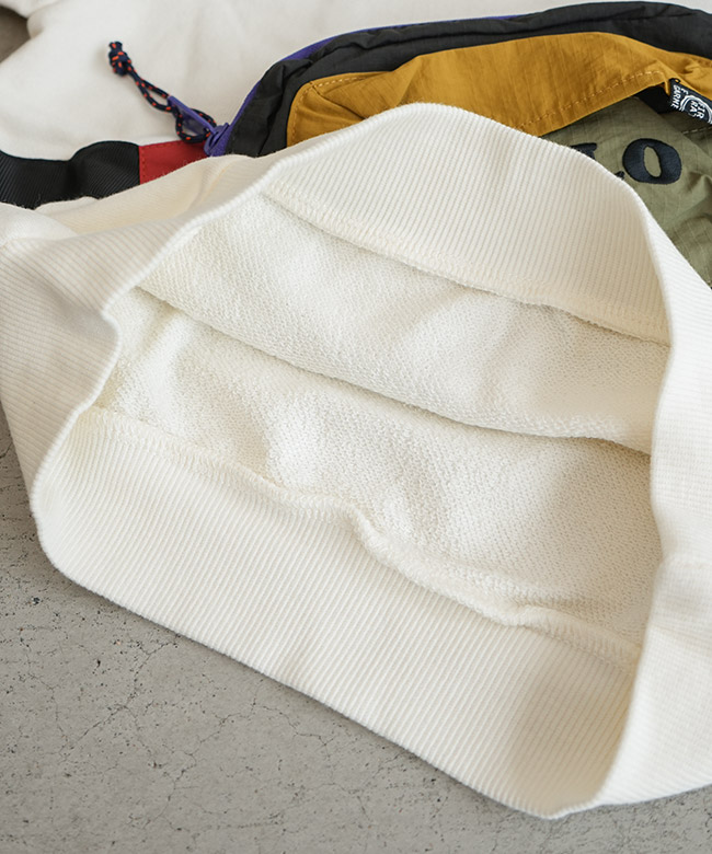 | 素材 | 本体:綿100% リブ:綿95% ポリウレタン5% バッグ本体:ナイロン100% バッグ肩紐:ポリエステル100% >>素材・生地・加工についての詳細はこちら |