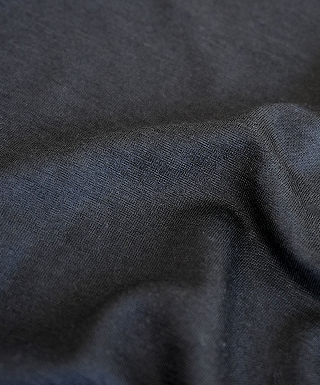 ・細番手のメリノウールを100%使用して編み上げた天竺生地は非常に柔らかく、素肌に着てもチクチク感を一切感じさせない快適な着心地が特徴です。