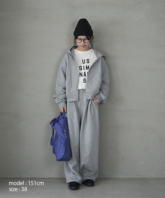 ・同シリーズのパーカーやブルゾンとセットアップもおすすめ。上下スウェットも、このシリーズならこなれた着こなしが叶います。