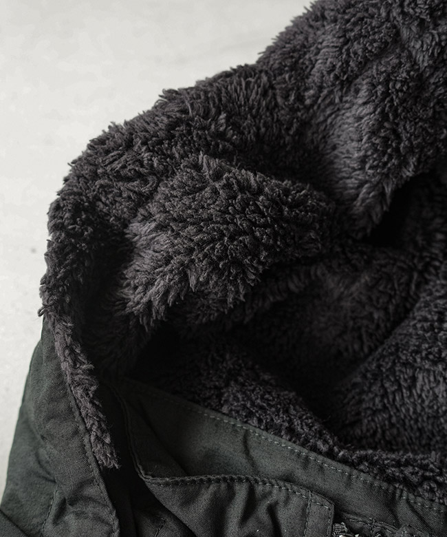 ・フードとボディの裏地には、リサイクルポリエステル素材の毛足ある柔らかいフリースを採用。