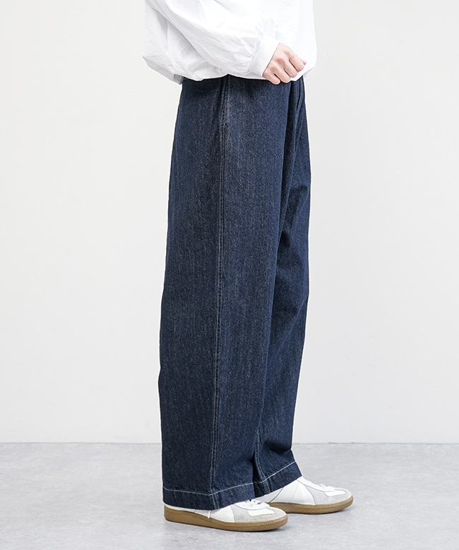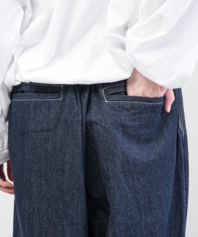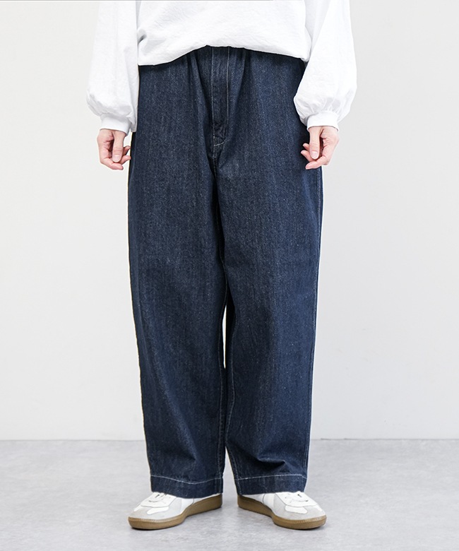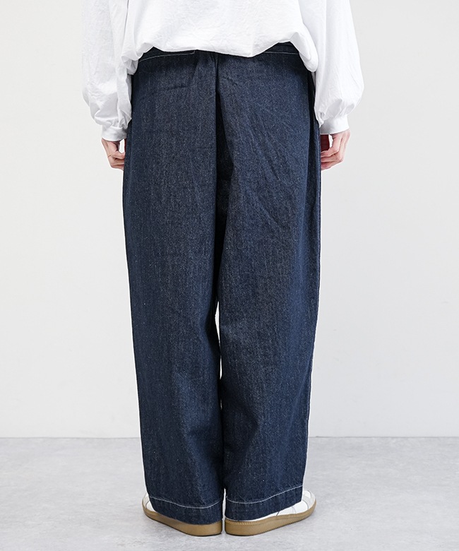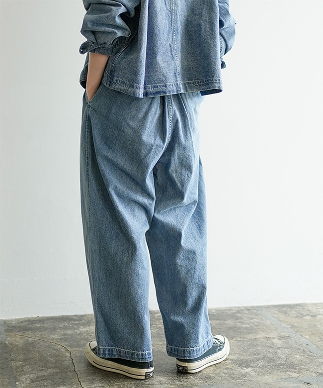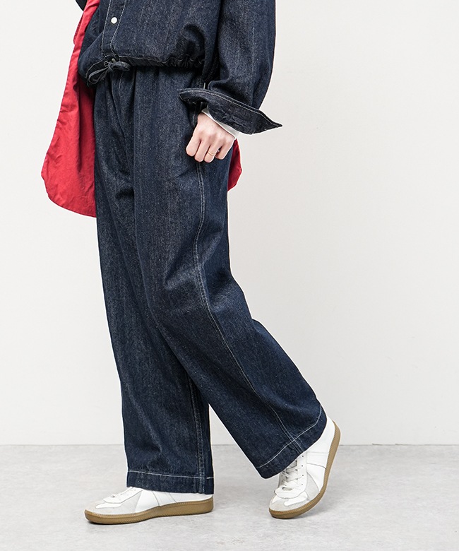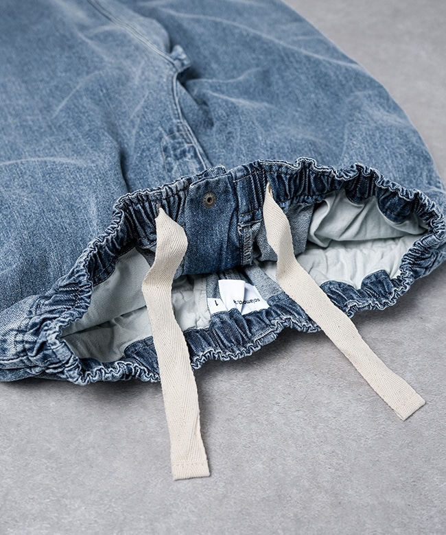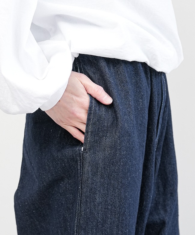 デニム生地で仕立てた、ゆったりと穿けるイージーパンツです。