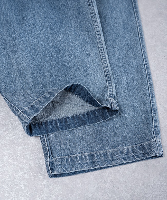 透け感:なし / 伸縮性:ウエストのみあり / 裏地:なし / 内ポケット:なし ・この製品は、製品縫製後に洗い加工を施しています。 その為、歪みやシワが見受けられ、同じサイズ内でも個体差が生じる場合もございます。 製品の特性として、予めご理解・ご了承くださいませ。 ・こちらはインディゴ染め製品です。 水や汗、摩擦などにより色移りしますので、淡色の製品と組み合わせる際は特にご注意ください。 また、色落ちしますので、お洗濯の際は単品洗いをしてください。 ※屋外(太陽光)と、室内(蛍光灯)とでは色の見え方には違いがございます。 ご使用のモニターや環境によっても色の見え方が異なりますことをご理解ご了承くださいませ。 |