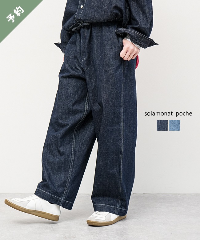 【ご予約商品/2月下旬頃入荷予定】◇[poche-dm-ez]solamonat poche(ソラモナポッシェ) デニムイージーパンツ ジーンズ ワイドパンツ ゆったり ワンウォッシュ ユーズド ブルー【他商品と同時注文不可】