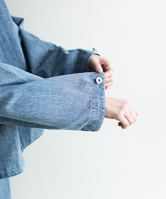・袖口は、ボタンで幅調整が可能。袖口をすぼめると袖全体のシルエットも変わり、また違った雰囲気で着ていただけます。