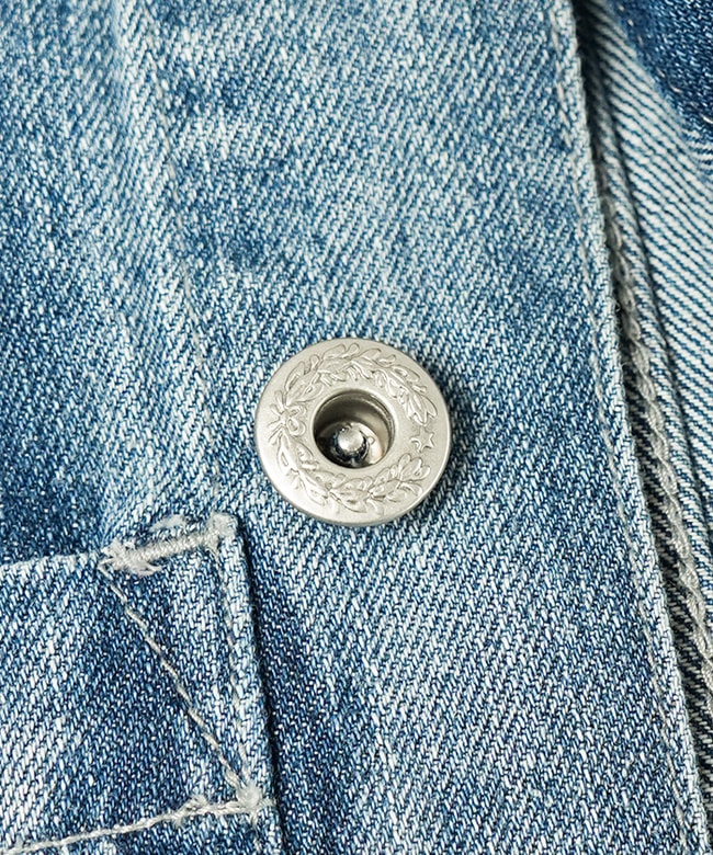 ・月桂樹が描かれたボタンは、ヴィンテージ感をプラス。
