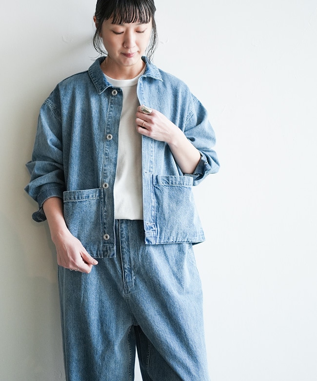 ・同生地のデニムイージーパンツと合わせたセットアップコーデもおすすめです。