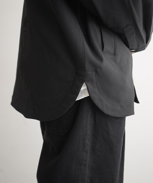 ・裾はあえてストレートではなくラウンドヘムを採用し、シャツジャケット感覚でラフに羽織っても様になるデザイン。