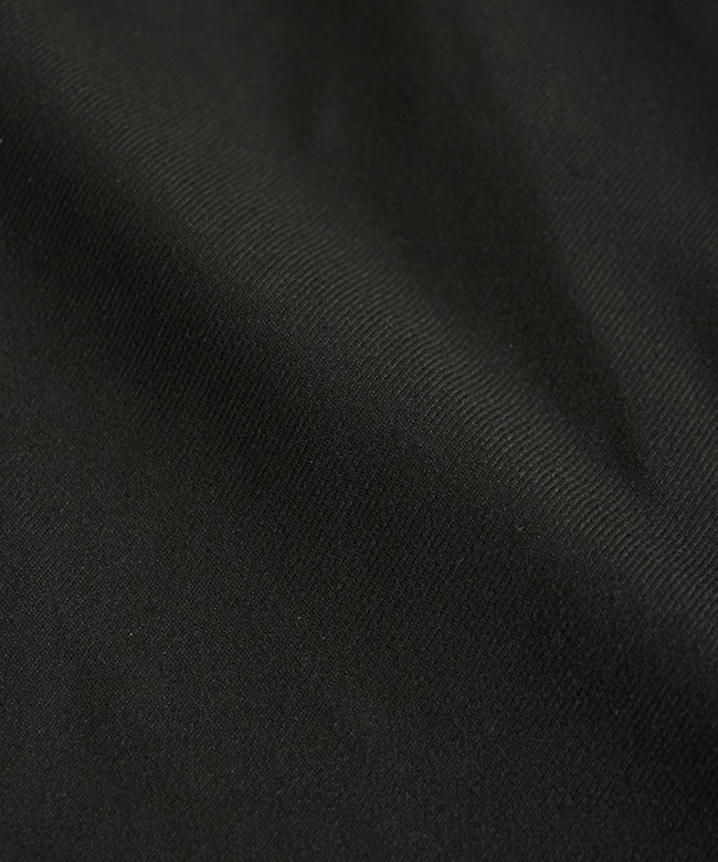 ・素材はポリエステルとレーヨン、ポリウレタンをブレンドしたウールライククロスを採用。梳毛ウールのような上品で艶感のある表情が特徴です。