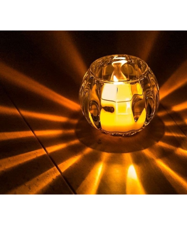 屋内用よりも大きな炎で、クリアカップがあかりを遮りません。