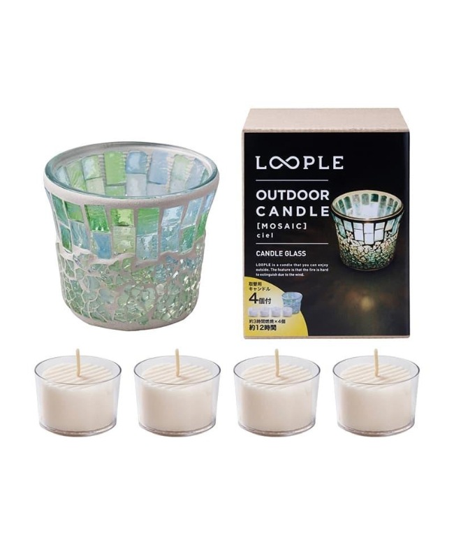 サイズ 高さ: 7cm 直径: 8cm 燃焼時間 約3時間 香り 無香料 セット内容 キャンドルグラス「モザイク」(シエル) 1個 ハイパワーカップキャンドル 4個 |