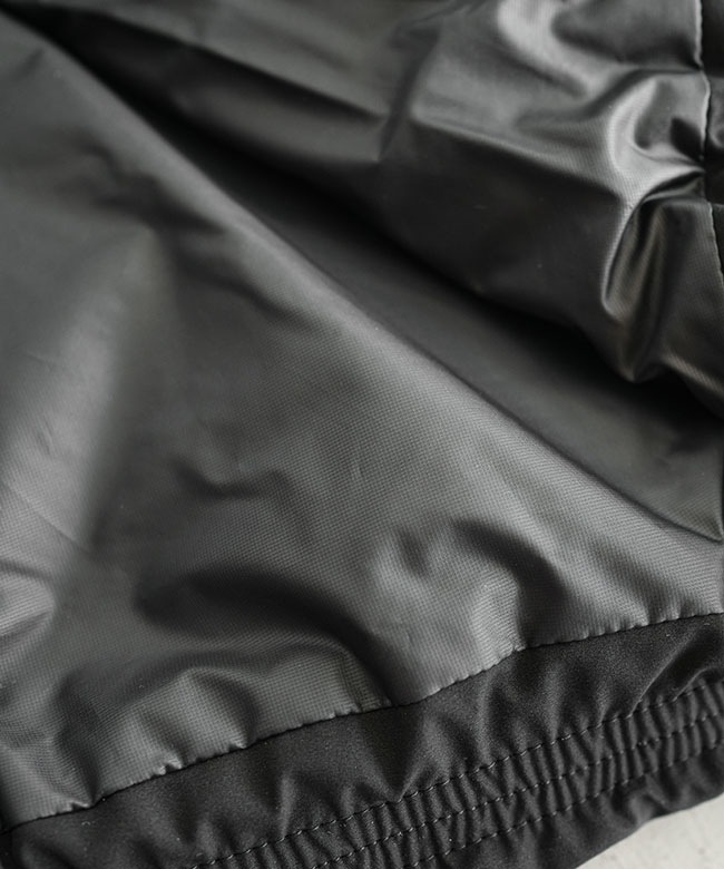 ・熱接着ノンキルト加工とシームテープ加工により、ダウンジャケットながら高い耐水性を備えています。