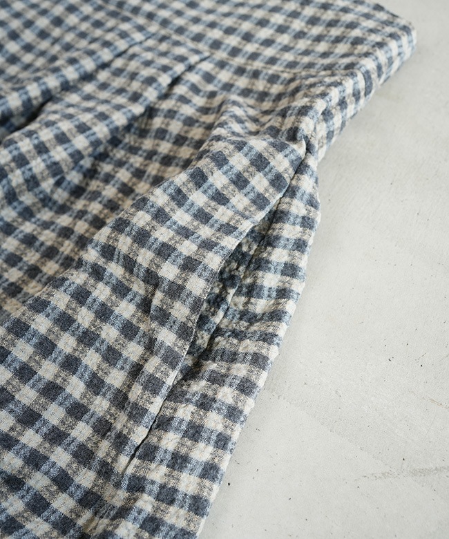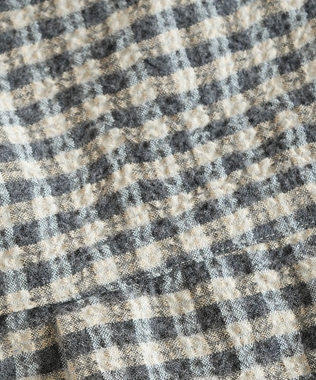 ・細かなギンガム柄がやさしい表情を添え、季節の装いにさりげないアクセントをプラス。