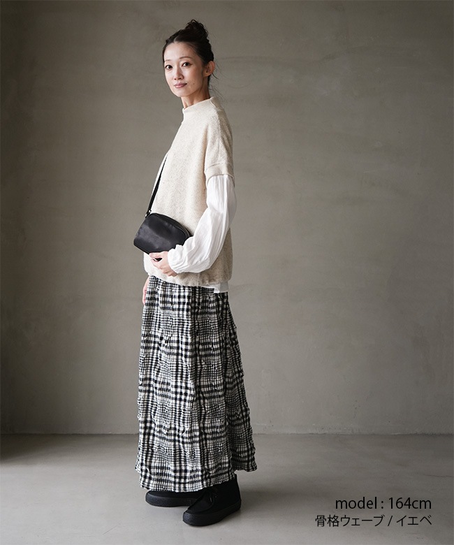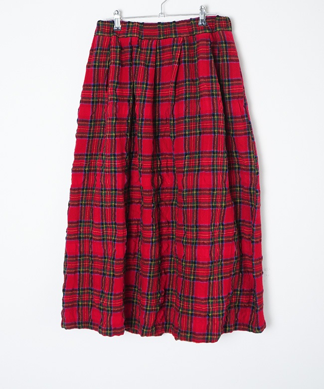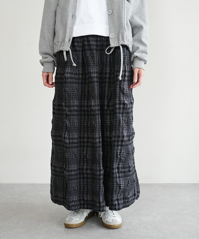 ・ポコポコとしたしぼ感が愛らしい、配色チェックのスカート。