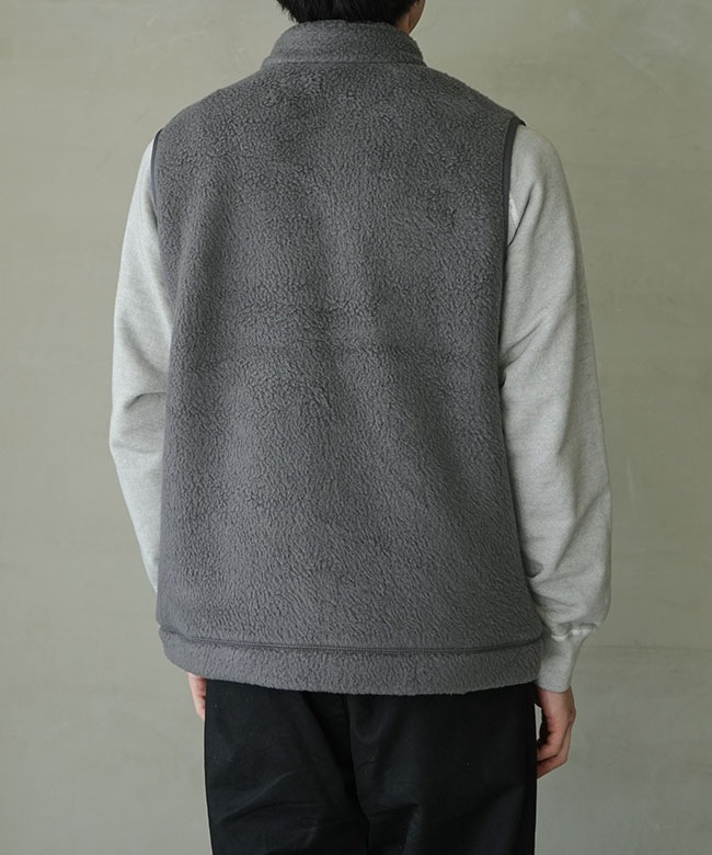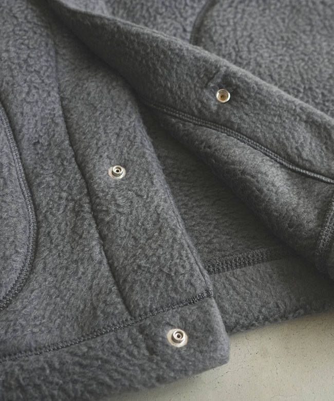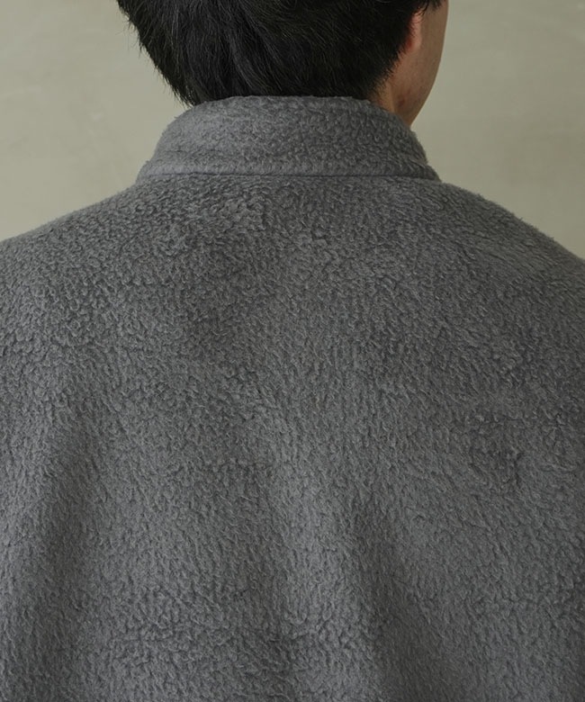 ・素材は見た目にも暖かな両面起毛ボア素材。ボリュームのある見た目ながら軽量なボアを使用しており、高い保温性ながらも快適な着心地です。