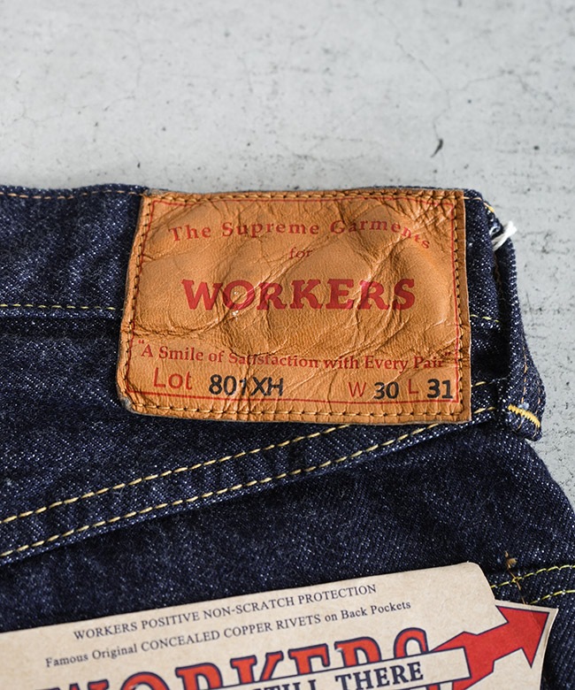 ・生地は綿を厳選し、糸から作成されたWORKERSオリジナルのエクストラヘビーデニム。