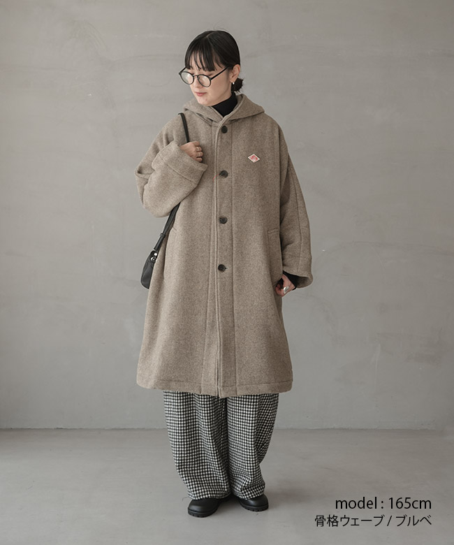 ・両面起毛でふっくらと仕上げたライトパイル生地を使用した、ウールライトパイル フードロングコート。