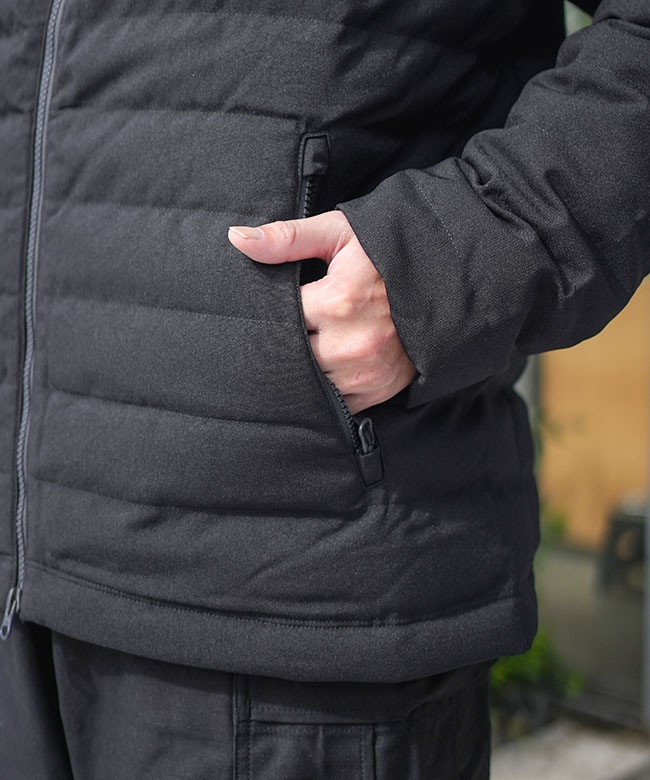 ・首元とポケット袋には柔らかな起毛トリコット素材を使用し、より防寒性を高めた設計になっています。