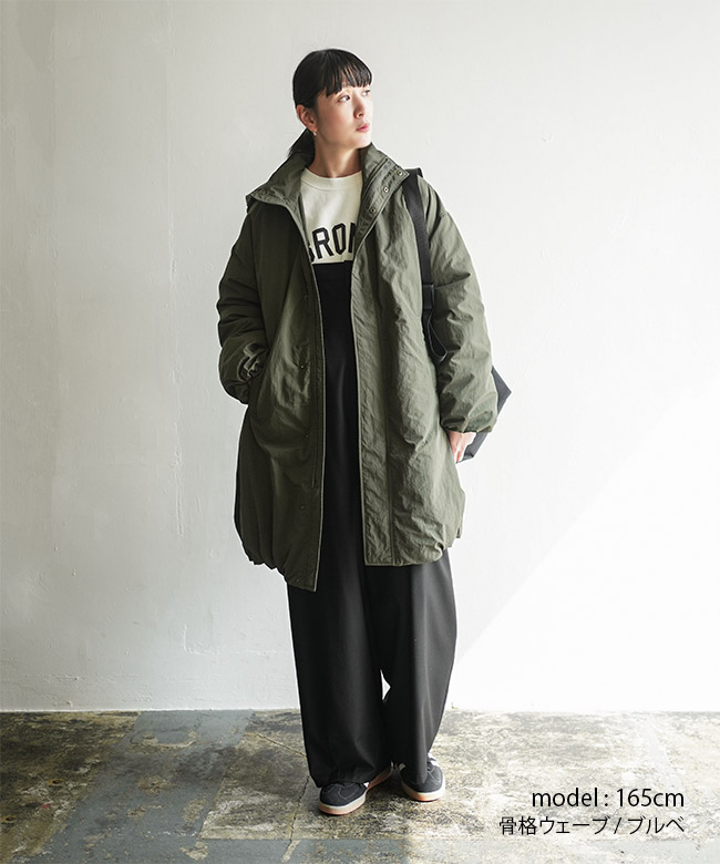 ・ボリュームのある立体的なフードで、全体をバランスよく見せながら小顔効果も◎