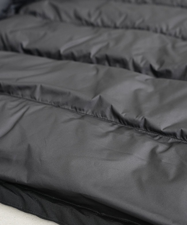 | 素材 | 表地:綿60% ナイロン40% 裏地:ポリエステル100% 別布:ポリエステル100% 中わた:ダウン72% レーヨン20% フェザー8% >>素材・生地・加工についての詳細はこちら |