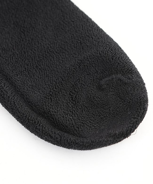 ・肌にあたる内側をシルク糸でパイル編みにすることで、クッション性と保湿性を確保。表面にはオーガニックコットン糸を使用し、シルク糸を覆うように編み立てることで、靴との摩擦を軽減し耐久性を向上させています。