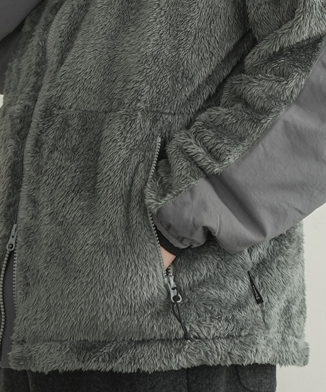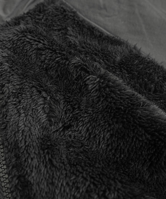 ・生地は厚すぎず柔らかいストレッチ性のあるフリースを使用。中間着としても使いやすいです。