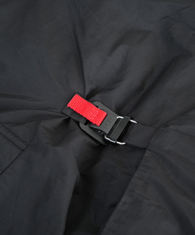 ・フロントはラップ型デザインに、FIDLOCK社製のマグネットバックルを使用。片手でサッと開閉でき、赤いプルタブがさりげないアクセントに。